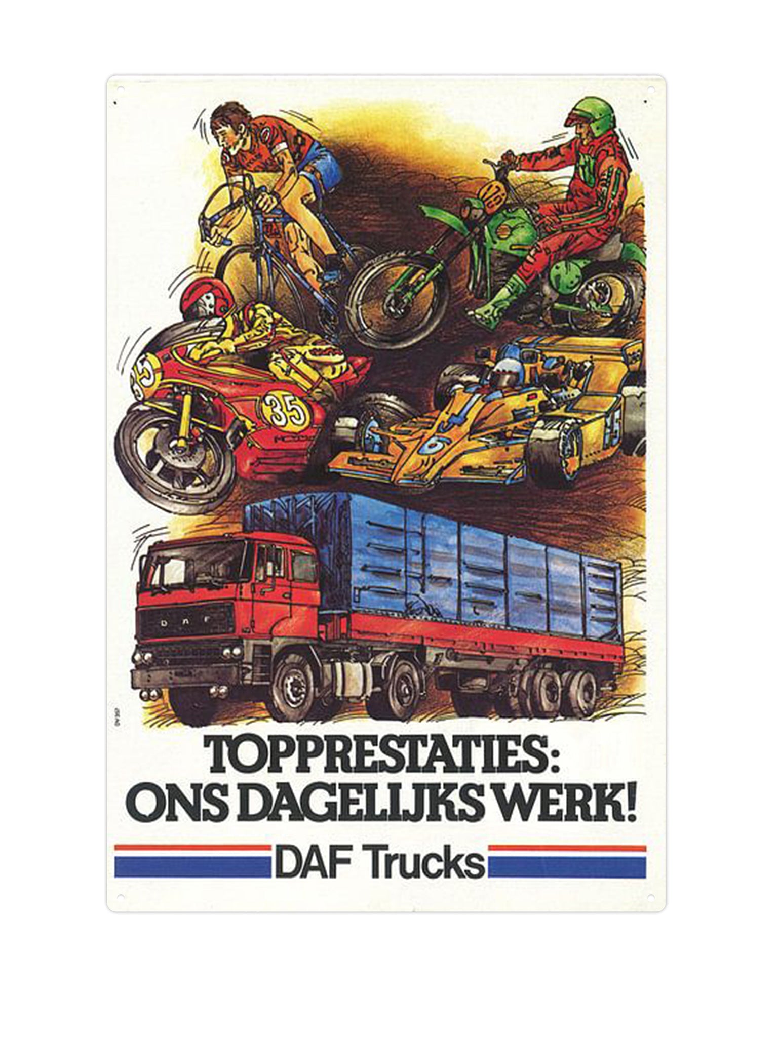 For the lovers of speed and nostalgia, we have signs with classic motorcycles and cars . Think of a retro garage look with a cool edge. These types of wall signs make every wall more beautiful and fit perfectly with an industrial interior style. Combine them with a wall sign from our Route 66 series for a complete picture.