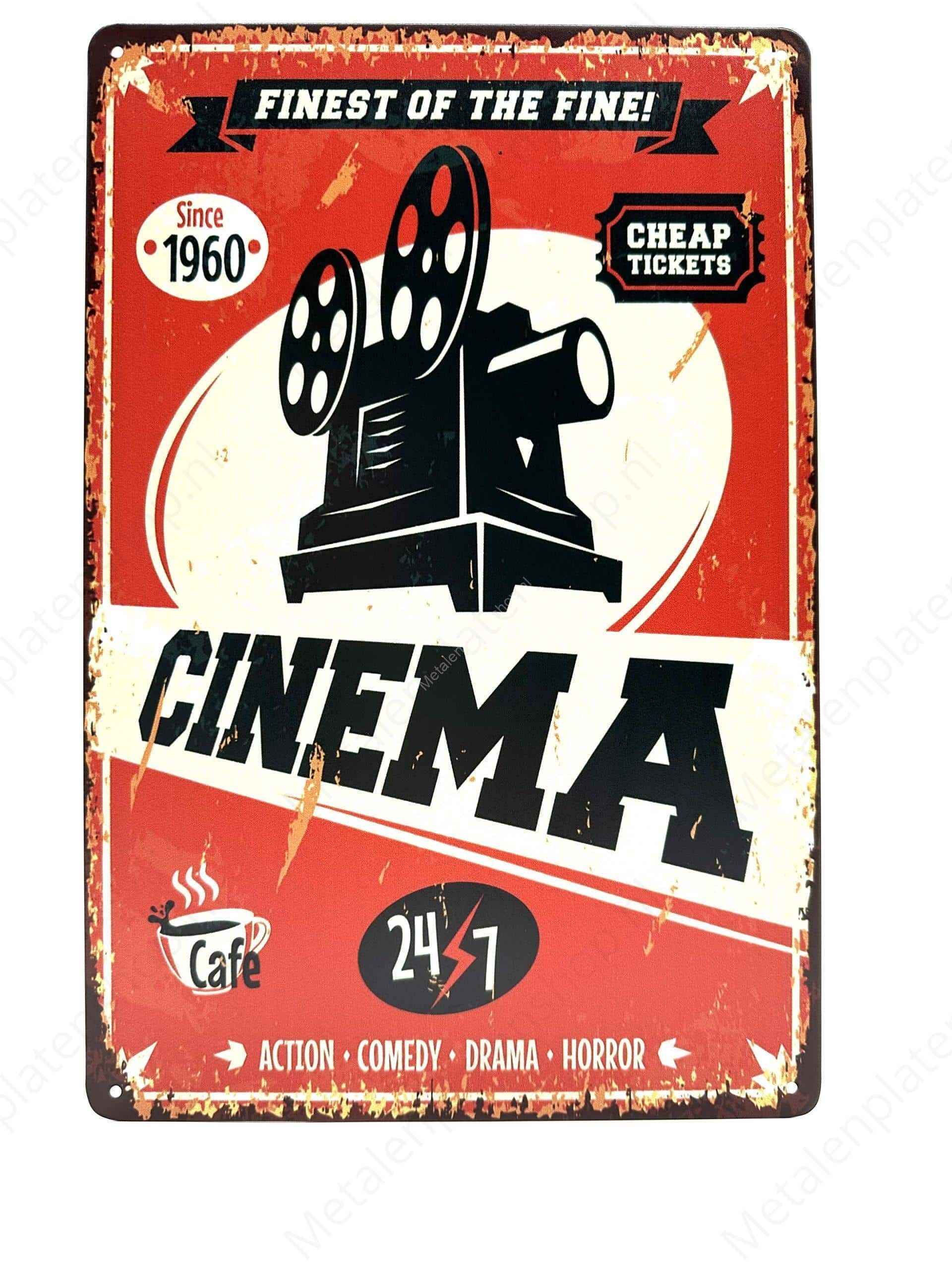 Onze metalen film bordjes zijn met zorg uitgekozen. Geen massaproductie of dertien-in-een-dozijn designs, maar een verrassend en wisselend aanbod van zowel bekende films als onverwachte pareltjes. Elk bord is gedrukt op stevig metaal en heeft een vintage of retro afwerking – zodat het lijkt alsof 'ie zo uit een ouderwetse bioscoop komt.