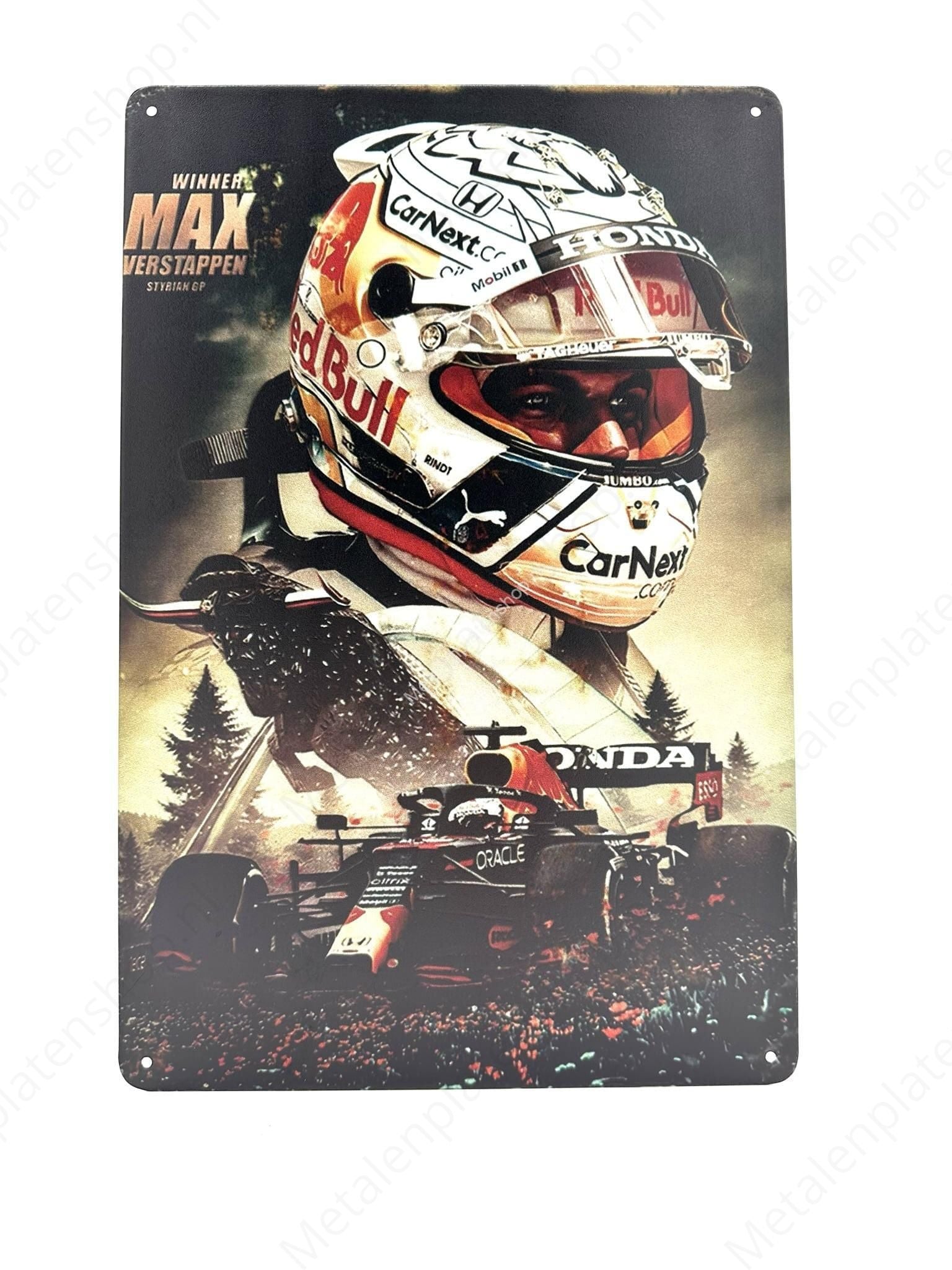 Bij Metalen Platen Shop vind je Max Verstappen wanddecoratie die nergens anders zo compleet is. Kies jouw favoriete bord, voeg het toe aan je winkelwagentje en reken eenvoudig af.