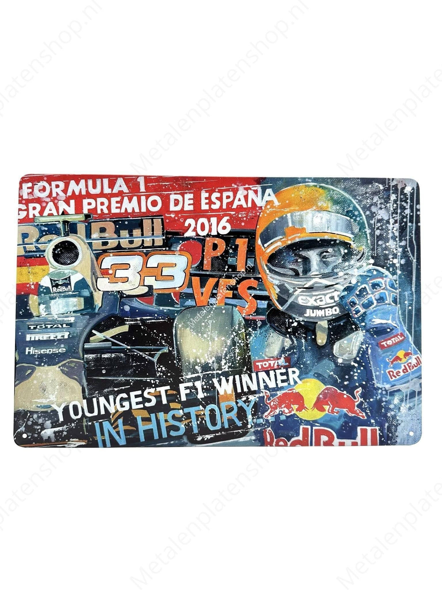 Metalen Wandbord - Formule 1 - Verstappen - Youngest F1 Winner