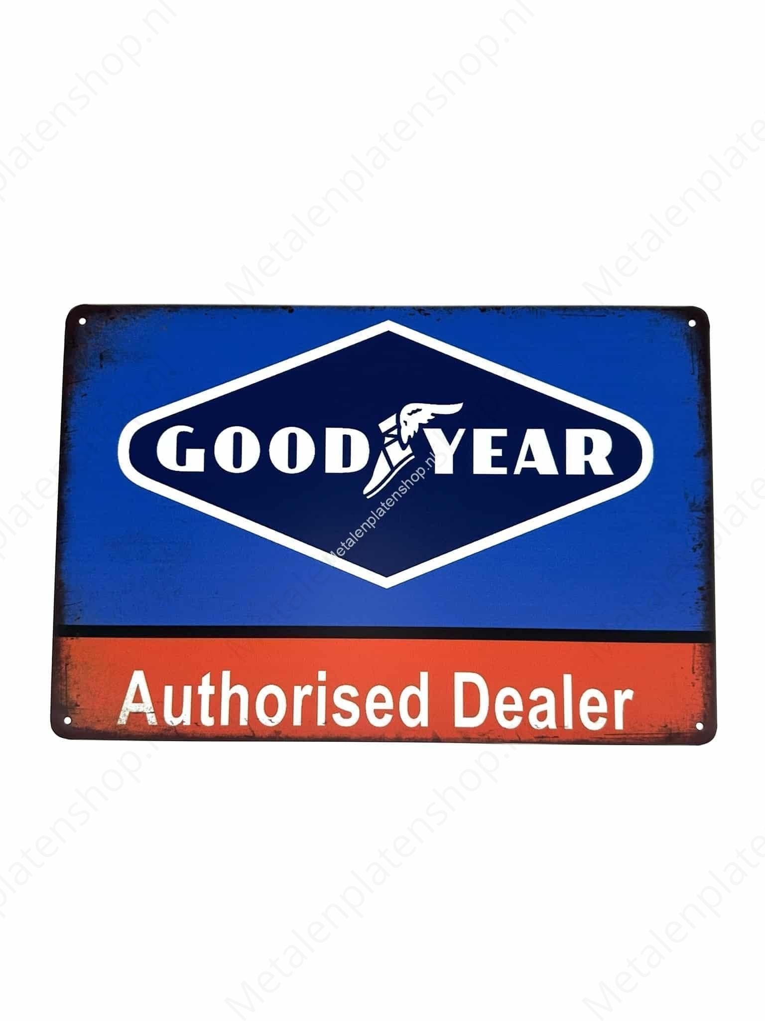 Bring a touch of happiness into your home with our unique "Good Year - Authorized Dealer" metal wall sign. Crafted from eco-friendly sheet metal, this sign tells a story that transforms any space. Imagine your guests walking in and being immediately drawn to the charming look of this sign. It's not only decorative but also a perfect conversation starter, enhancing the ambiance of your home.