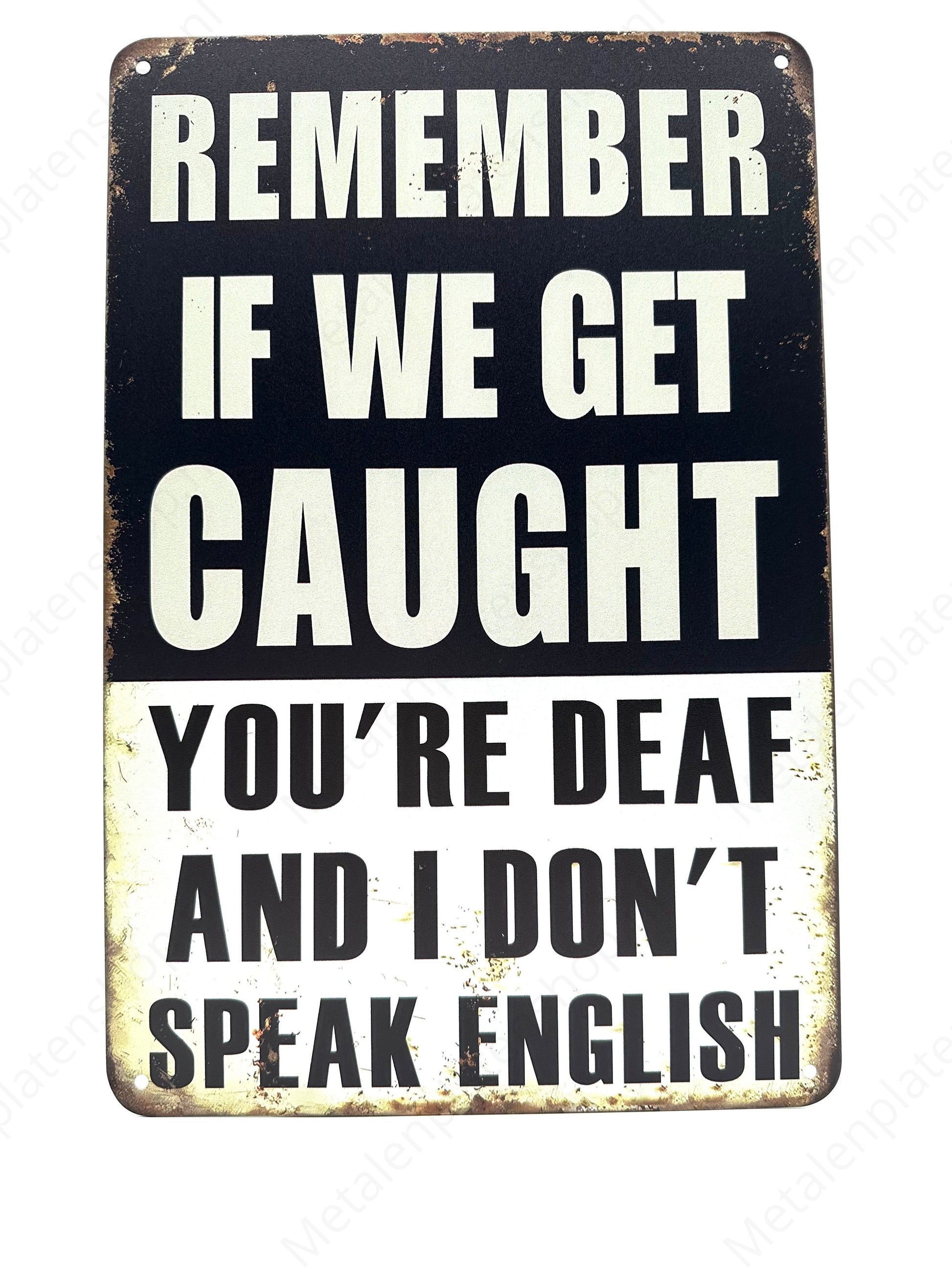 Bring a playful atmosphere to your home with our metal wall sign! With the thought-provoking message, "Remember, if we get caught, you're dead and I don't speak English," this sign is a real eye-catcher. The story it tells can not only reflect your own secret adventures but also bring a smile to your guests' faces.