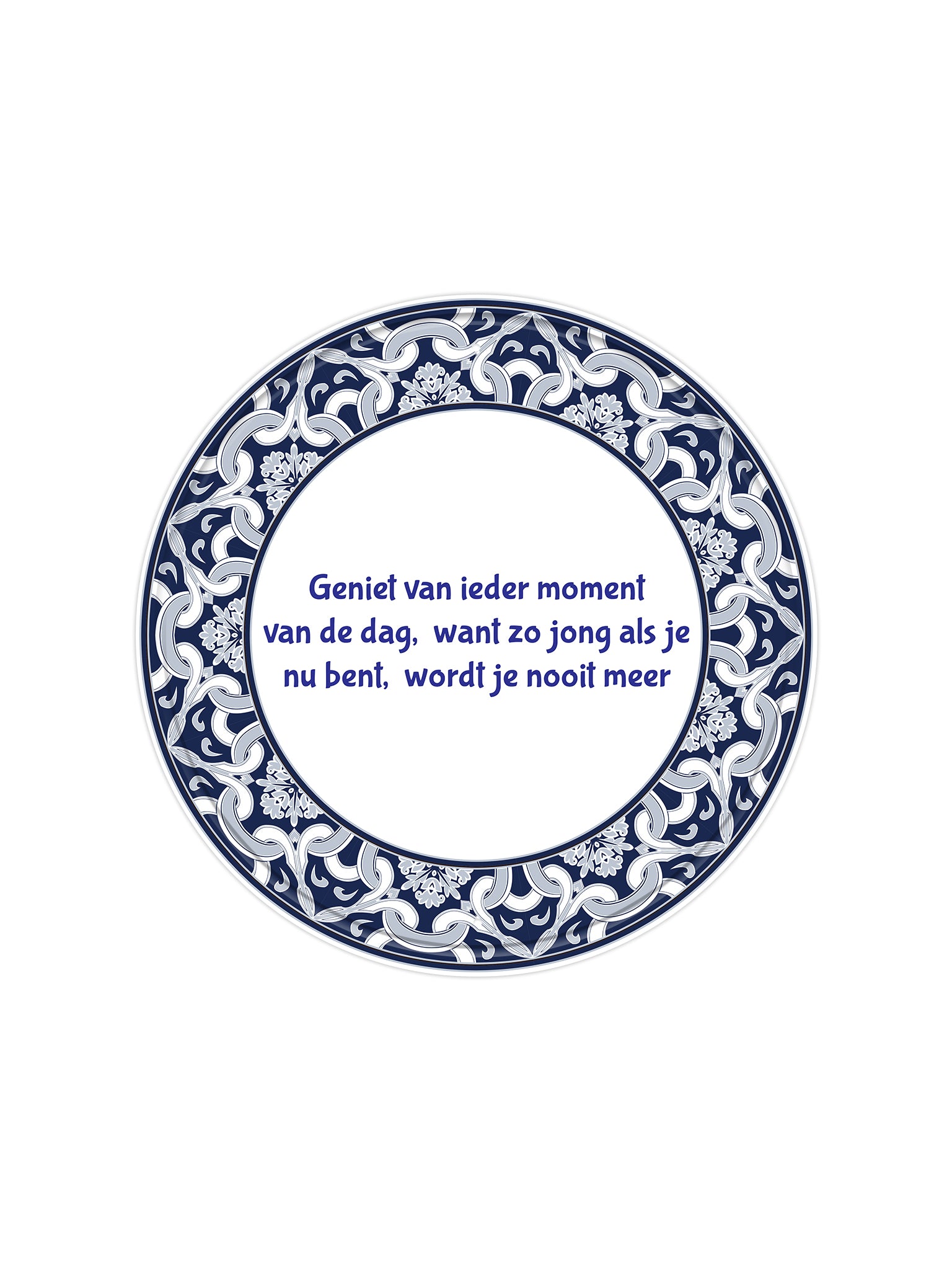 Stel je voor: elke ochtend begint met een glimlach, terwijl je jouw favoriete plek thuis opvrolijkt met dit unieke metalen wandbord. Het bord, met de inspirerende tekst 'Geniet van ieder moment van de dag, want zo jong als je nu bent, wordt je nooit meer', nodigt je uit om bewust te genieten van de kleine dingen in het leven. Dit is niet zomaar een decoratiestuk; het is een herinnering om elke dag ten volle te leven.